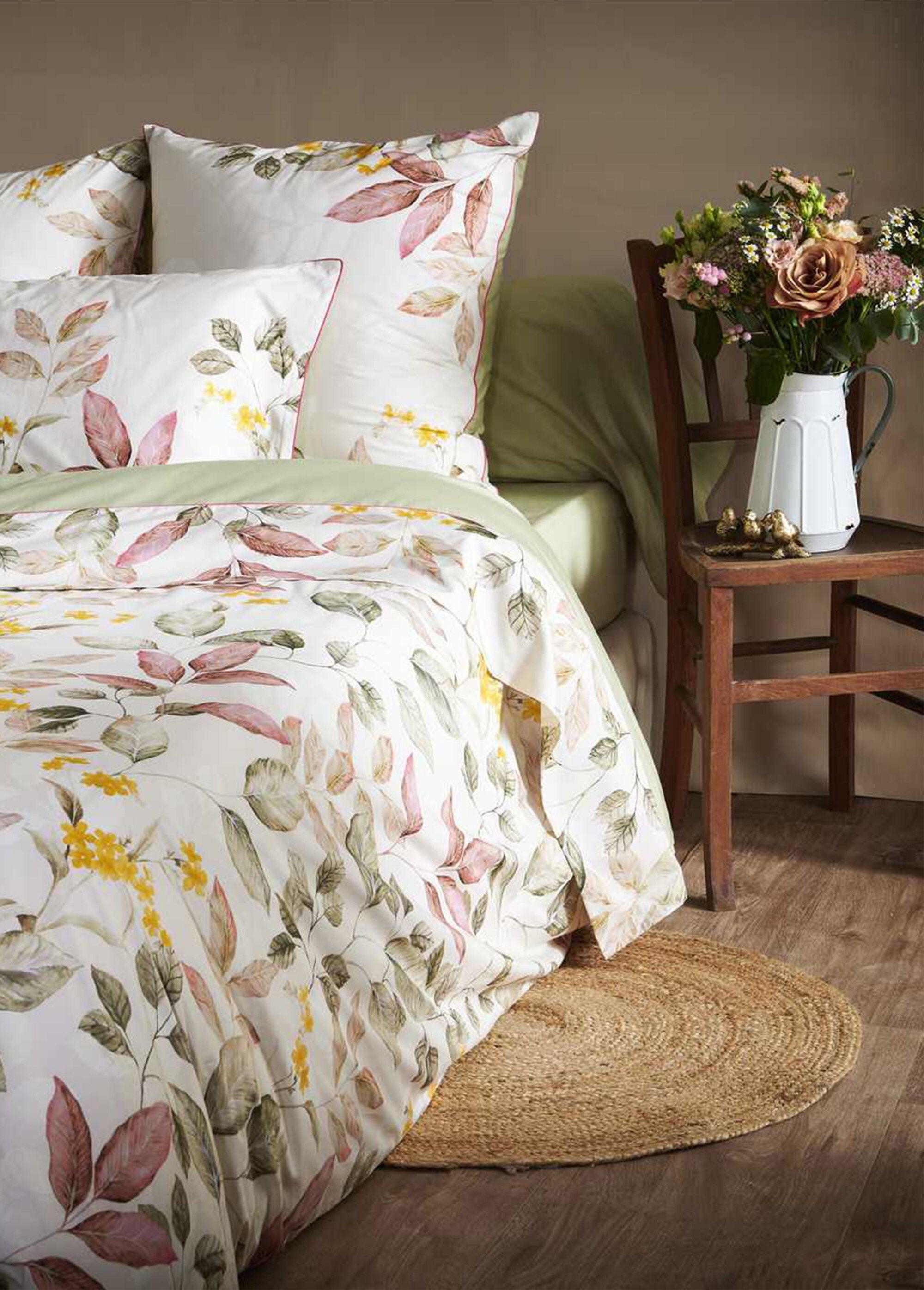Descubra a coleção Maria, uma mistura perfeita de elegância intemporal e desenhos florais inspiradores. Cuidadosamente confeccionada em algodão percal de 80 fios, esta linha de roupa de casa incorpora suavidade e conforto. Tons sutis de pó e sálvia evocam a tranquilidade de um jardim de outono, enquanto delicadas folhas de outono e flores amarelas ensolaradas adicionam um toque quente e revigorante. Detalhes do lençol de baixo: Boné de 35cm liso verde sálvia Deixe-se seduzir pela elegância floral de Maria, fonte inesgotável de inspiração para criar um verdadeiro casulo de relaxamento e beleza.