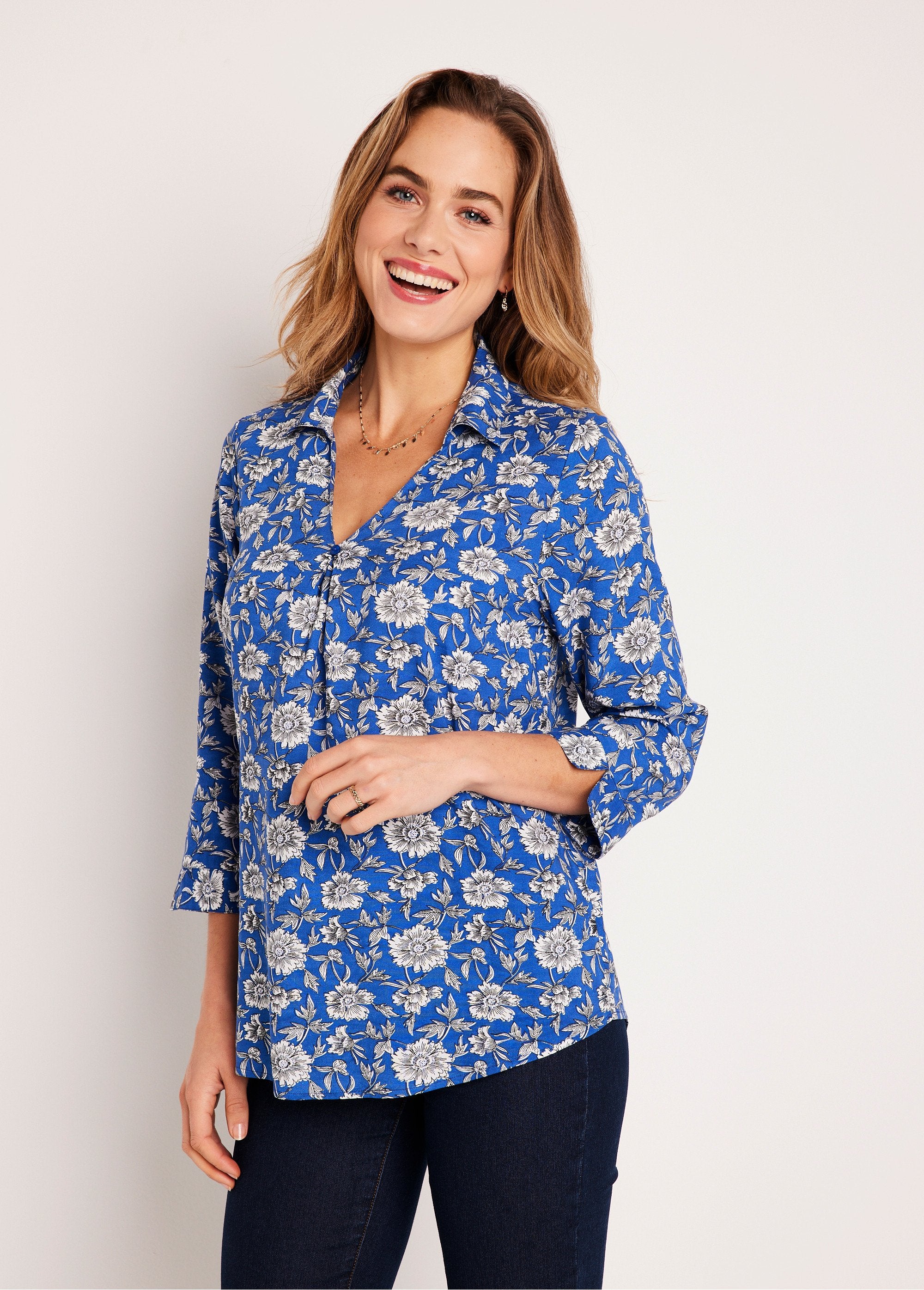 Flores e cores em tendência para o verão! Projetada para esconder habilmente pequenas falhas, esta túnica feminina com sua linha longa e solta se ajusta perfeitamente. Você vai usá-lo facilmente por cima de jeans, leggings ou calças lisas... Look perfeito garantido!