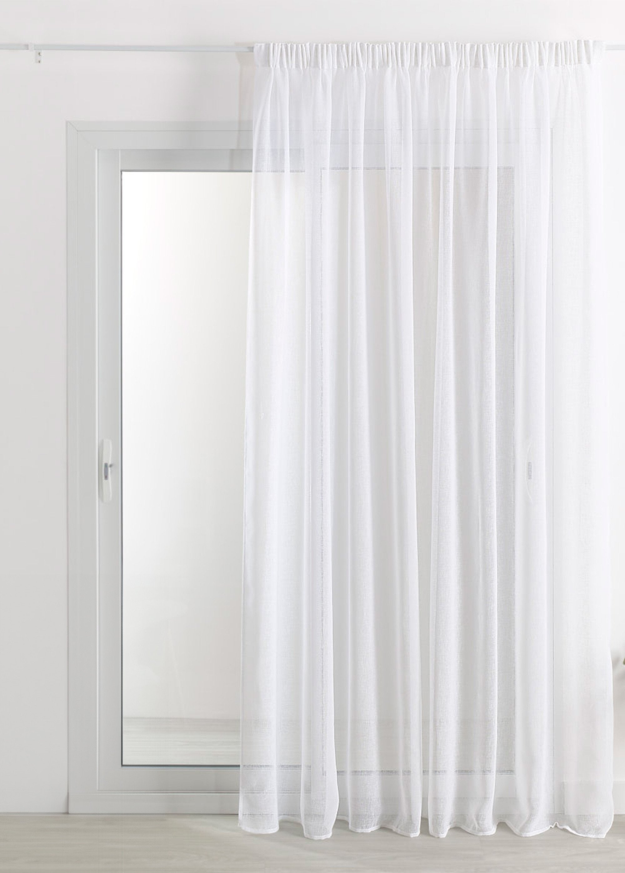 Estas cortinas de musselina transparente com acabamento franzido trazem um toque de modernidade à sua casa. Seu tecido de aparência natural e sua bela textura com trama aparente criam uma atmosfera aconchegante e acolhedora. Graças ao seu caimento perfeito, estas cortinas de musselina brincam habilmente com as transparências, permitindo que você aproveite a luz ambiente e preserve sua privacidade. Ideais para salas de estar ou quartos, adaptam-se a todos os estilos de decoração, combinando elegância e funcionalidade. Transforme seu espaço com estas cortinas de musselina que combinam estética e praticidade.